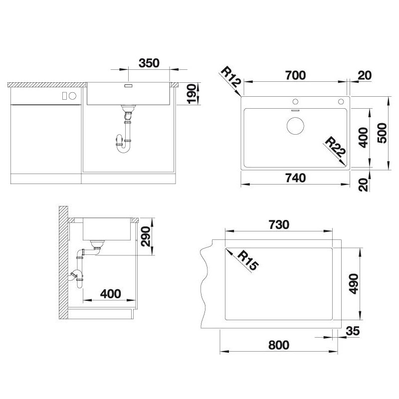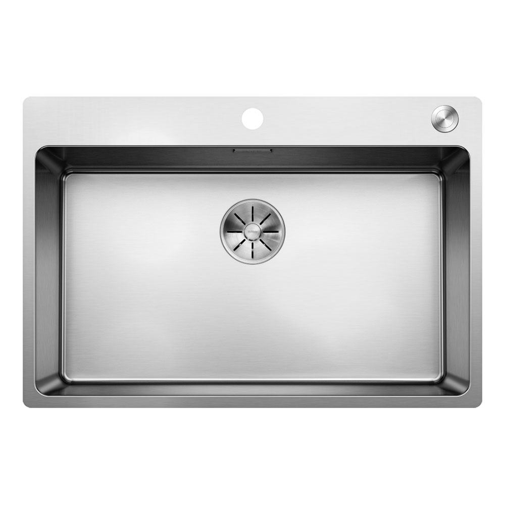BLANCO ANDANO 700-IF/A MXI køkkenvask i rustfrit stål 74 x 50 cm, 80 cm skab, med PushControl afløbsbetjening og InFino 3½’’ afløbssystem, uden afløbsbakke, til ilægning/ planlimning.