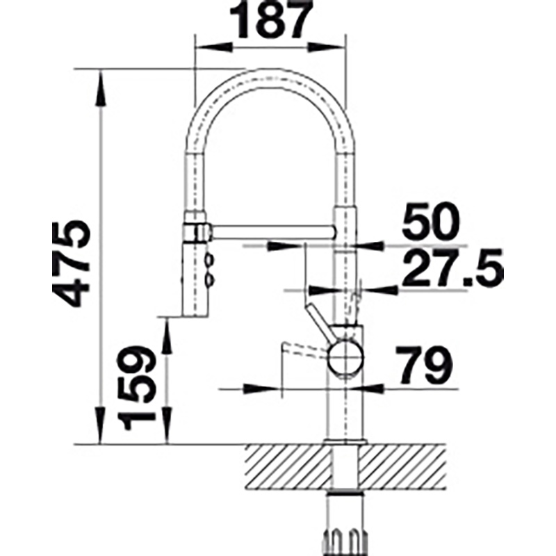 Blanco Catris-S Flexo køkkenarmatur med fleksibel slange og to stråletyper – en kraftig skyllestråle samt en brusestråle, der er god til at rense/vaske grøntsager. Armaturet er en høj model, hvorfor montering anbefales i en køkken-ø, eller hvor der ikke er overskabe.