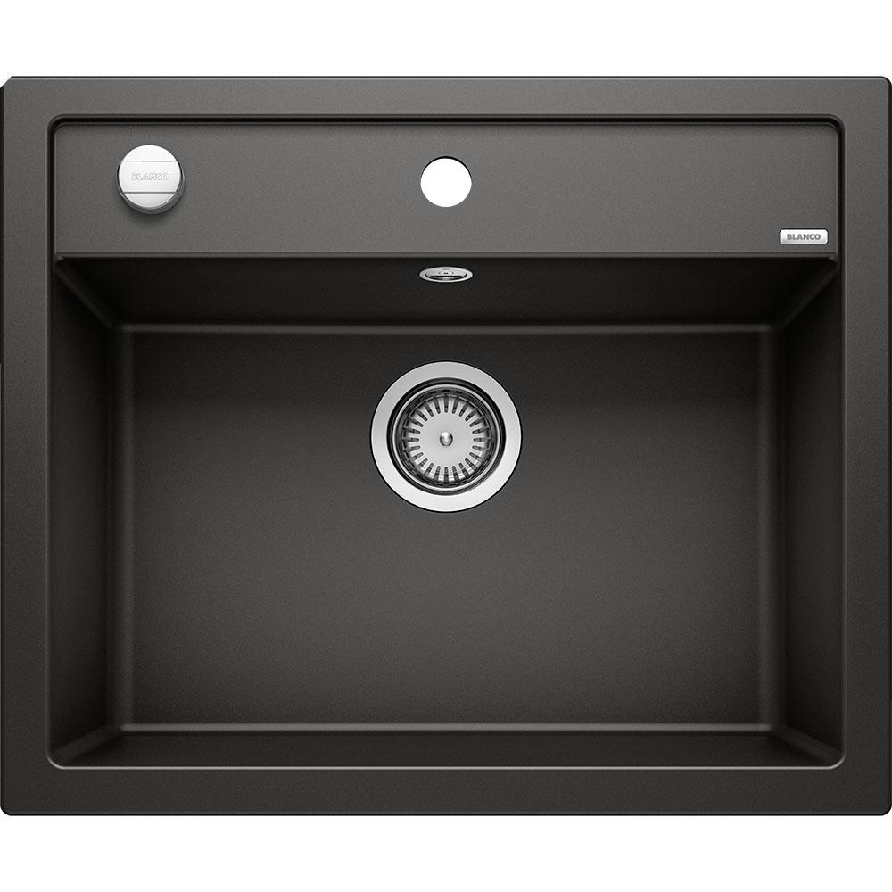 BLANCO DALAGO 6 sort MX til nedfældning. Moderne design med klare linjer. Særlig rummelig enkeltkumme køkkenvask. Afløbsbetjening med drejeknap