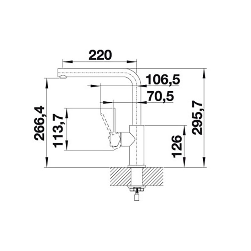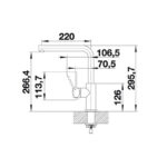 Blanco Lanora køkkenarmatur i et traditionelt design i børstet rustfri stål. Armaturet har koldstart, som er en energisparefunktion d.v.s. at der kun kommer koldt vand ud, når der åbnes for armaturet og grebet er i midterposition.