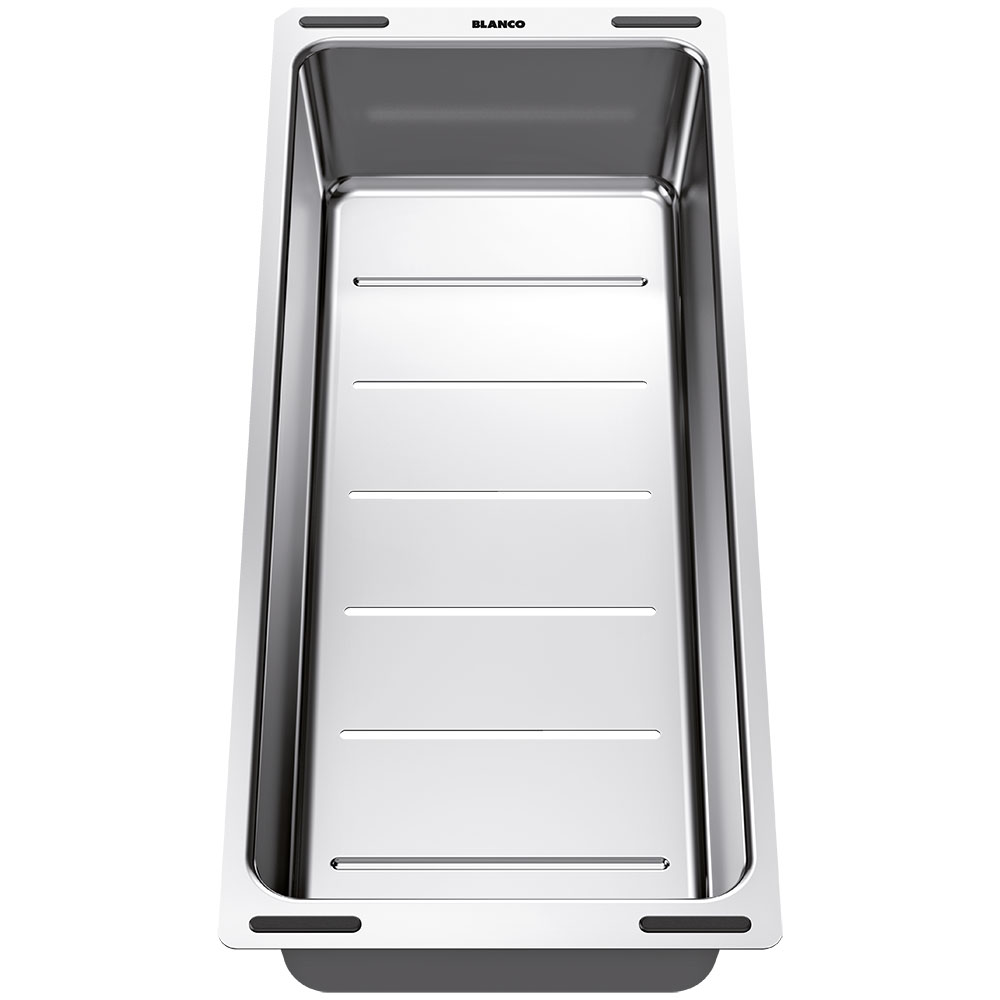 - Skylleskålen hænger på vaskens for- og bagkant og kan anvendes som si eller dørslag til afdrypning mv.
