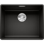 BLANCO SUBLINE 500-F PD sort UXI køkkenvask i Silgranit® 52,7 x 42,7 cm, 60 cm skab, med manuel afløbsbetjening og InFino 3½’’ afløbssystem, uden afløbsbakke, til planlimning.