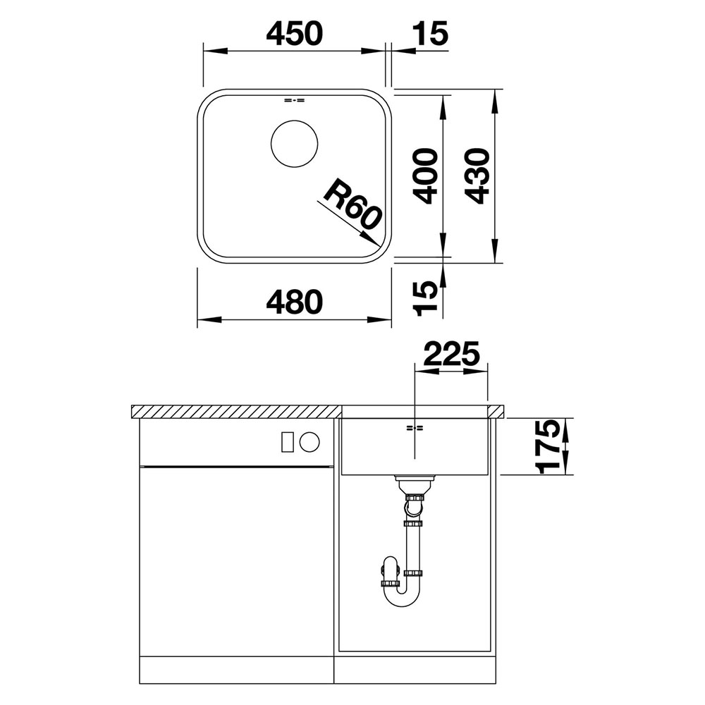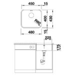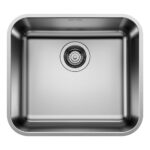 BLANCO SUPRA 450-U køkkenvask i rustfrit stål 48 x 43 cm, 50 cm skab, med manuel afløbsbetjening og 3½’’ afløbssystem, uden afløbsbakke, til underbygning.
