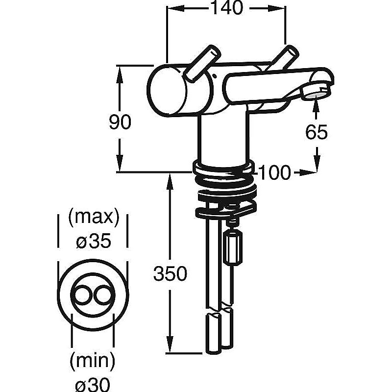 Børma A2 2-grebs håndvaskarmatur uden bundventil.