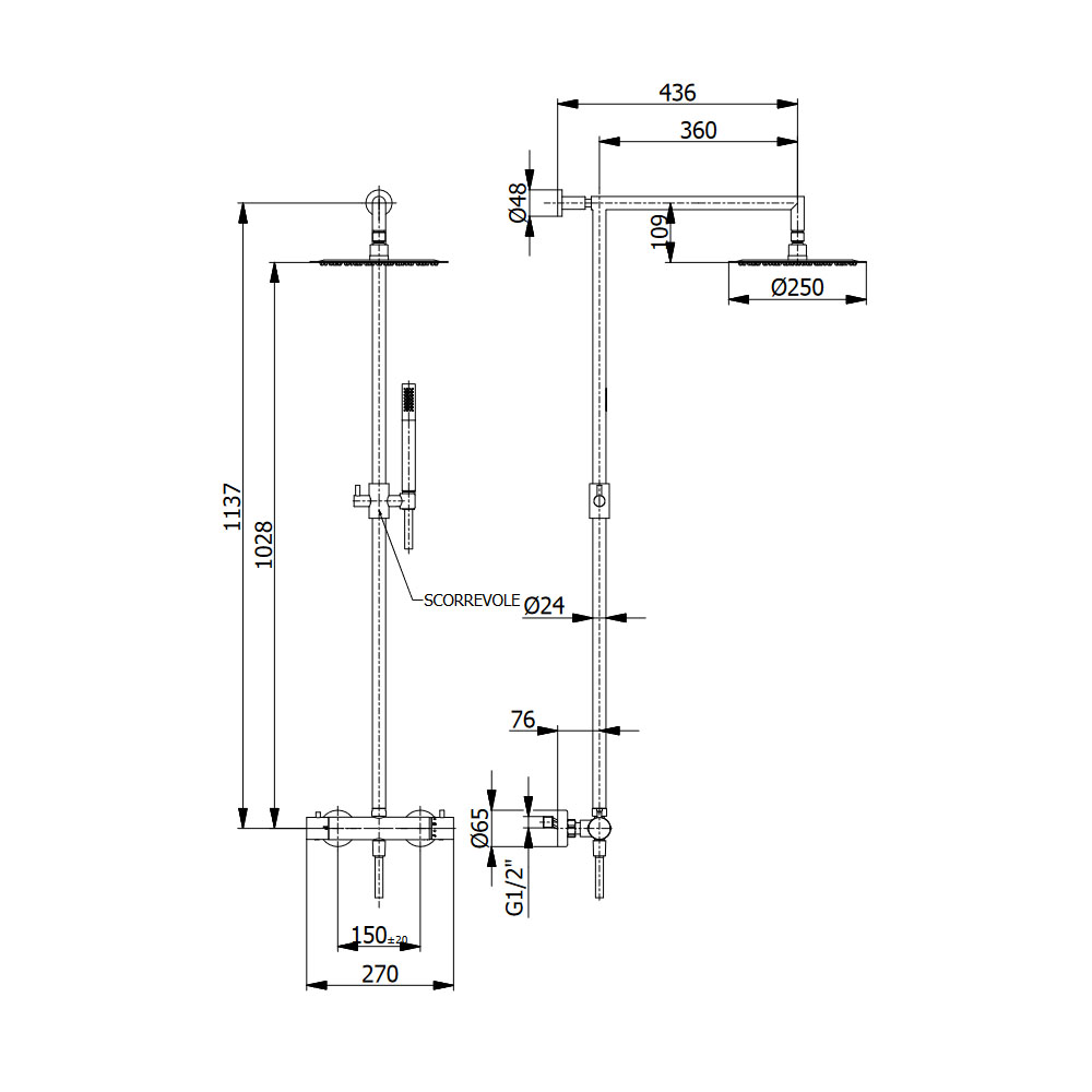 Cassøe Lago komplet brusesystem termostat, brusehoved og håndbruser.