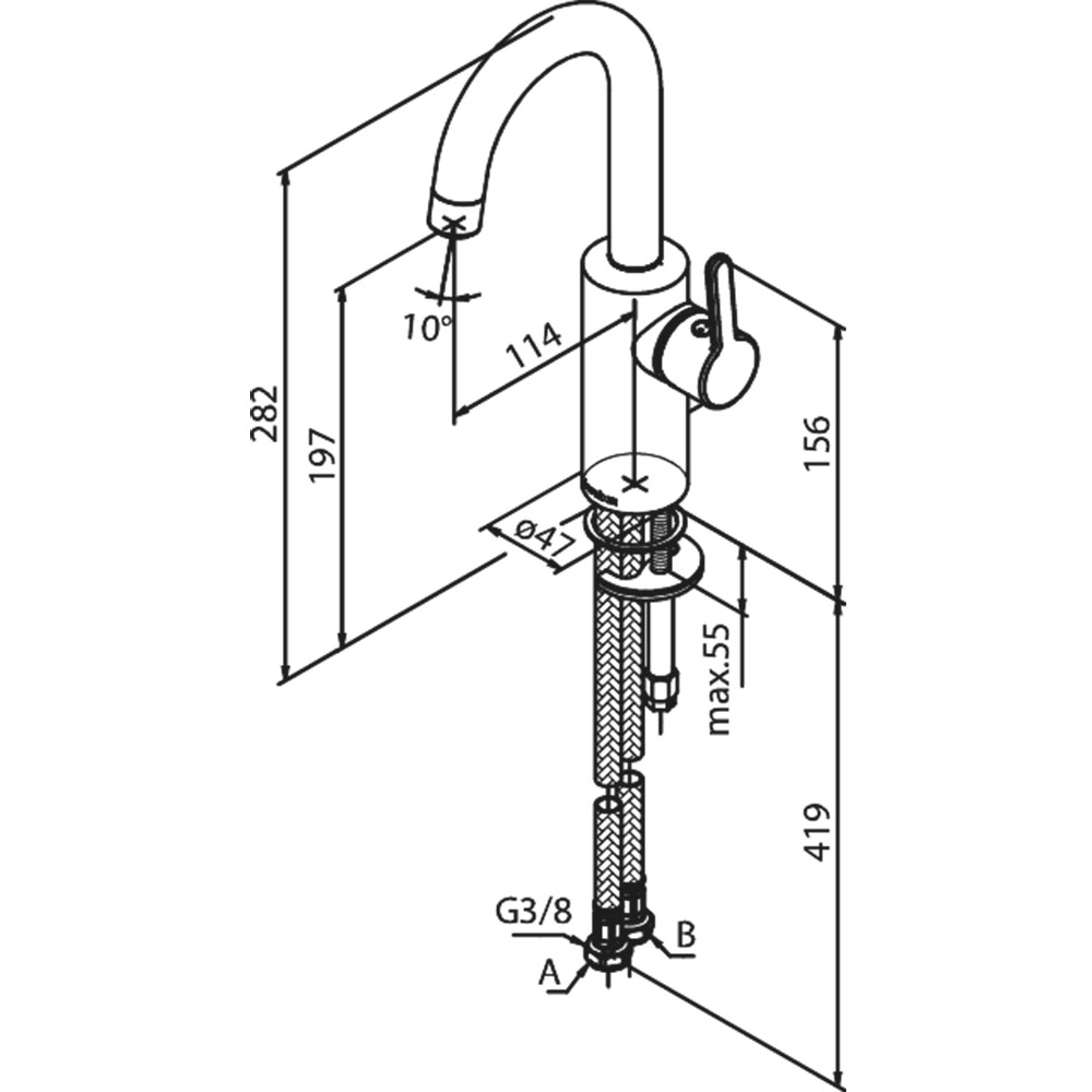 da tilslutningsslangerne er med 3/8″ omløbere.