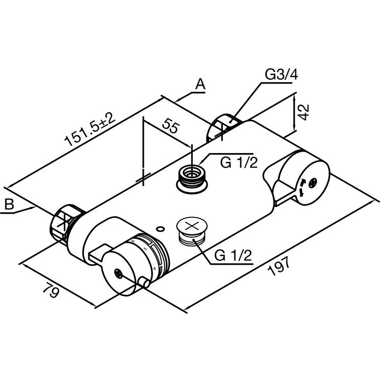 Damixa TMC Termostatbatteri T/Kar/Brusebatteri med spejlvendt rørmontering