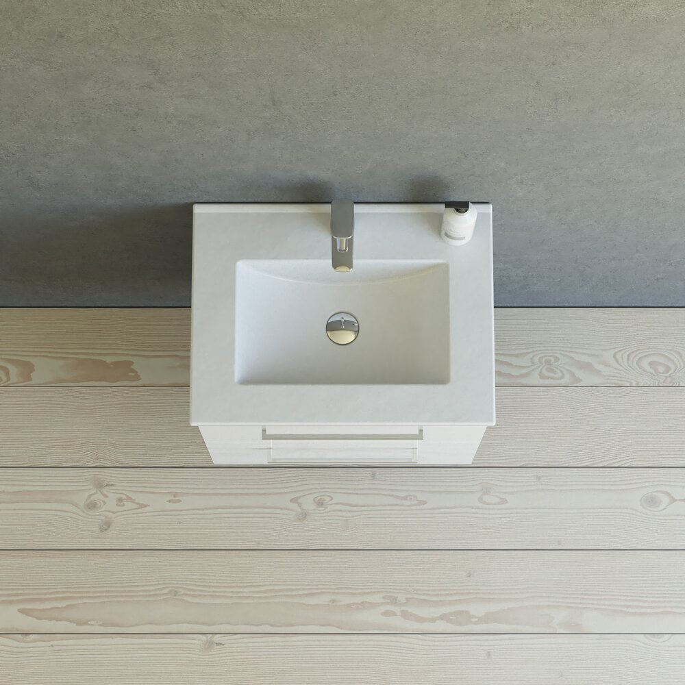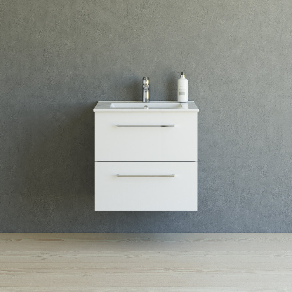 Til alle fronter medfølger som standard et greb i krom, der er inkluderet i prisen. Dina håndvasken i sanitetsporcelæn er en stor håndvask med et tidløst og minimalistisk design med tynd bordplade og bassin med geometrisk stram udformning. Sanitetsporcelæn er et stærkt materiale, med et blødt og afrundet design på alle kanter i både bassin og bordplade.