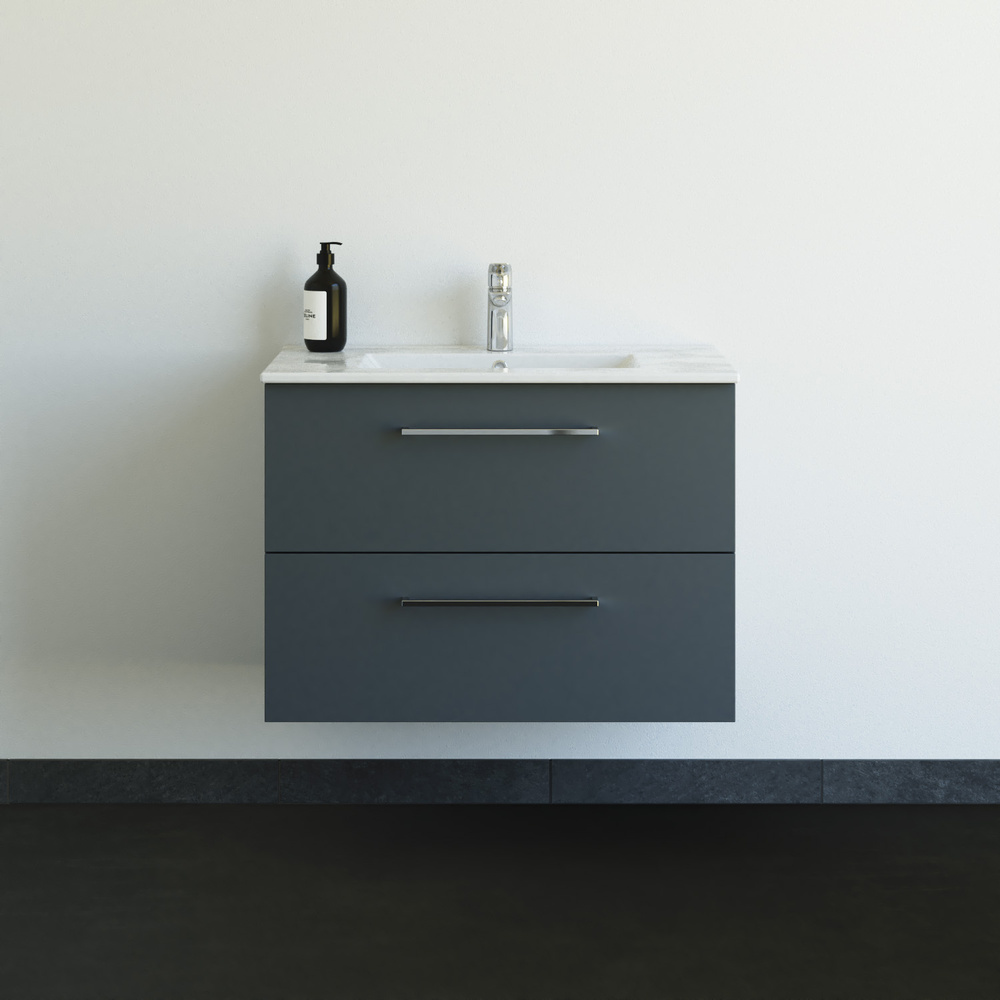 Til alle fronter medfølger som standard et greb i krom, der er inkluderet i prisen. Dina håndvasken i sanitetsporcelæn er en stor håndvask med et tidløst og minimalistisk design med tynd bordplade og bassin med geometrisk stram udformning. Sanitetsporcelæn er et stærkt materiale, med et blødt og afrundet design på alle kanter i både bassin og bordplade.