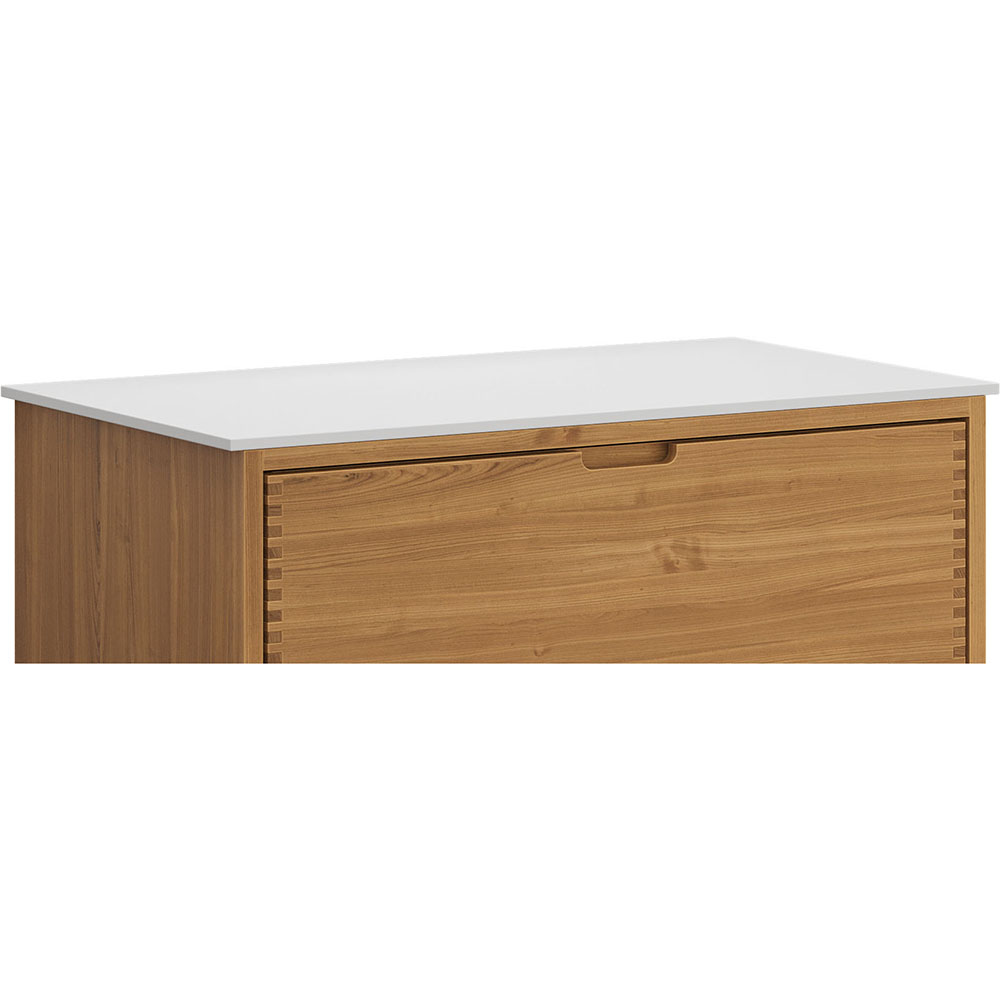 Med en bredde på 80 cm passer den godt ind i både små og mellemstore rum. To rummelige skuffer, der giver optimal opbevaringsplads. Håndtag er udfræset, således der ikke kan ses ind i skuffen.