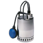 Grundfos Unilift KP150A.1 kælder- og lænsepumpe er en vertikal ettrins-dykpumpe af rustfrit stål med vertikal afgangsstuds.