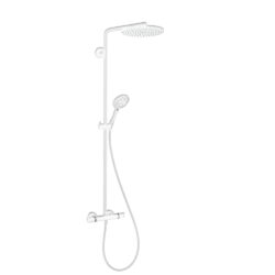 Hansgrohe Raindance AXOR Starck S 240 1jet Powderrain komplet brusesystem i mat hvid.