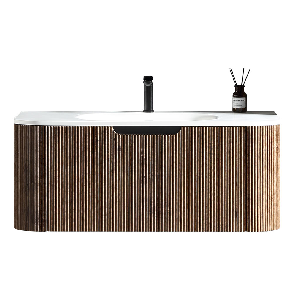 - Brown-Oak finish – trælooket skaber en hyggelig og nordisk atmosfære, som er let at kombinere med både lyse og mørke badeværelsesflader.