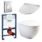 Opgradér dit badeværelse med denne elegante komplette toiletpakke fra VVSnetto.dk der indeholder et Ifø Sign Art vægtoilet, et sæde med Softclose-teknologi og en lav Grohe cisterne.