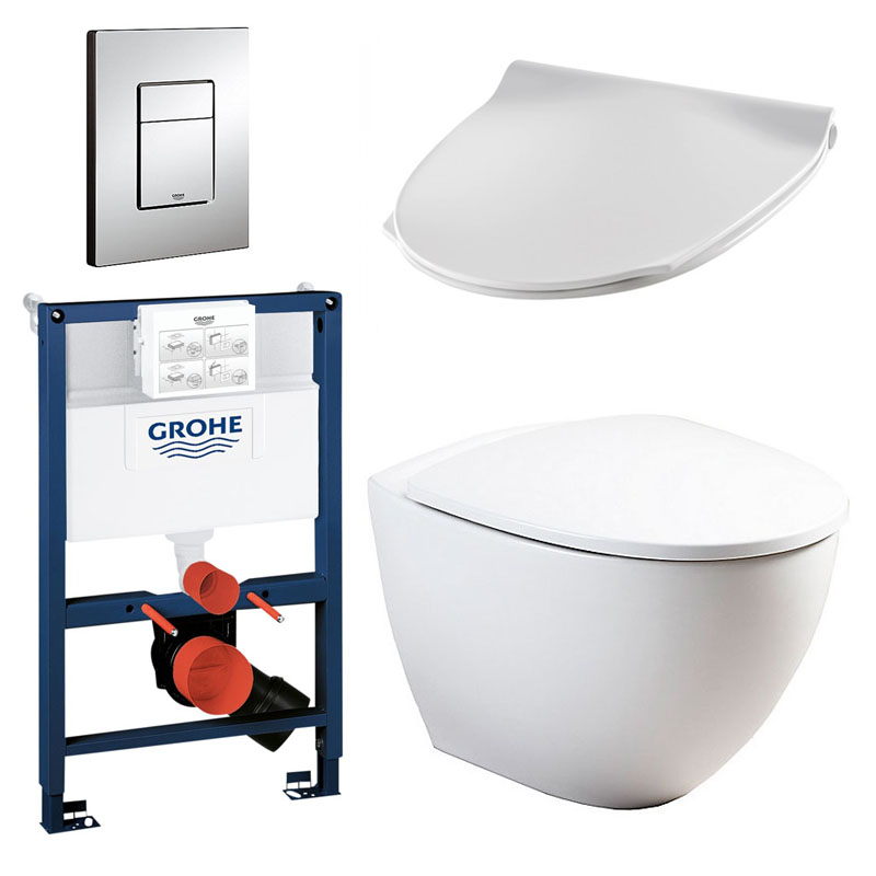 Komplet toiletpakke med Ifø Sign Art vægtoilet, sæde med softclose og lav Grohe cisterne