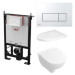 Komplet toiletpakke med lav Alca cisterne og trykknap med 2 skyl. Et meget tidløst design. Toiletpakken indeholder alle dele til montering.