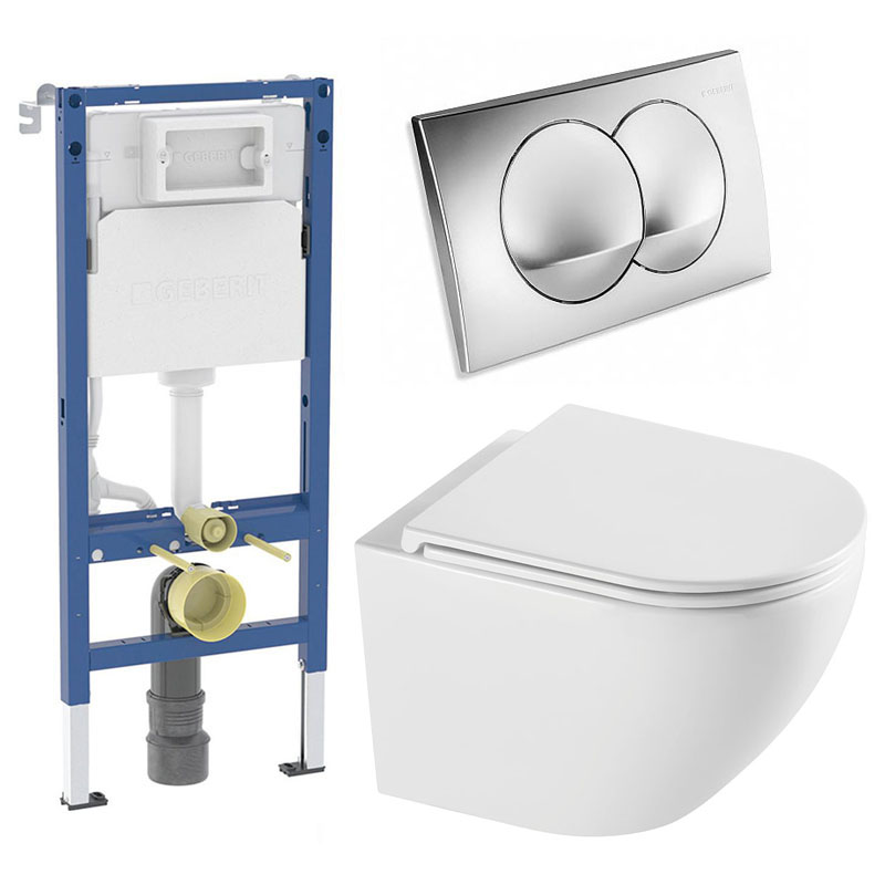 Denne flotte toiletpakke med Laufen toiletskål uden skyllekant er i et tidsløst design og yderst nem at renholde. Til pakken er der et soft-close sæde med quick-release. Cisternen er fra Geberit, der er kendt for den meget høje kvalitet. Cisternen er med forkromet trykplade.
