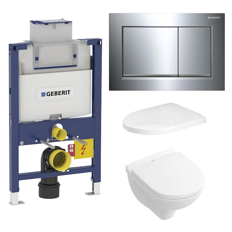 Komplet Toiletpakke med Villeroy & Boch Vægtoilet og Sæde + Lav Geberit Cisterne med Trykknap