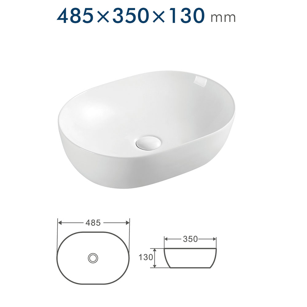 - Form: Oval – dimensioner 485 × 350 × 130 mm
