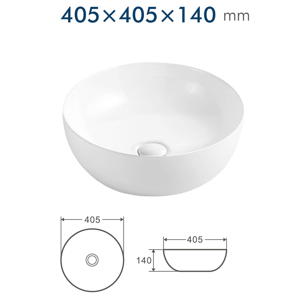Krypton Sorø – Rund vask i hvid porcelæn (405 × 405 × 140 mm)