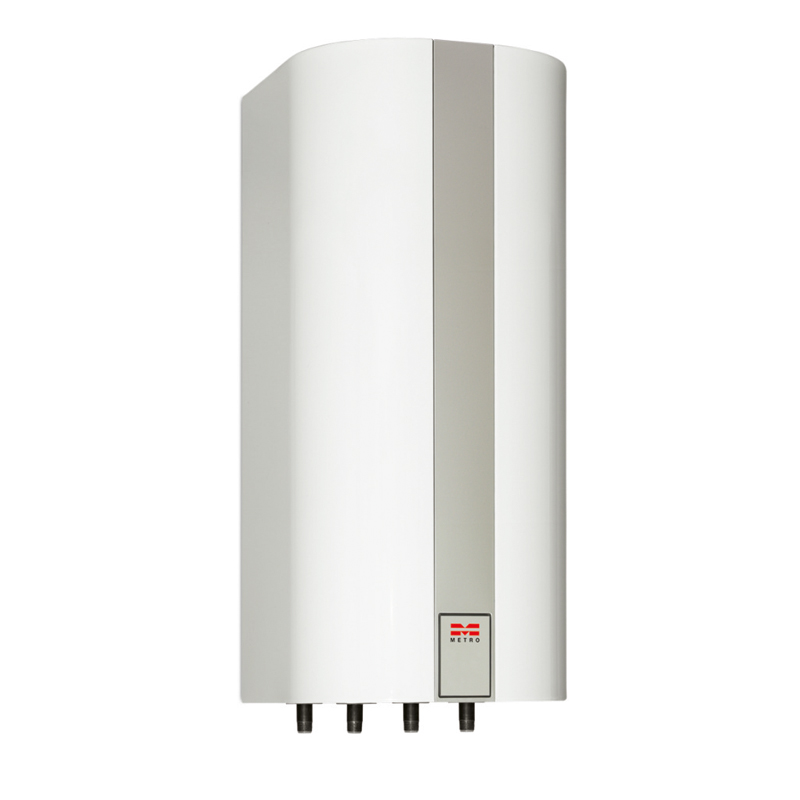Metro varmtvandsbeholder Type 2643 med varmtvandsprioritering inkl. termostat, til opvarmning af brugsvand til køkken, håndvask og brusebade i énfamilieboligen.