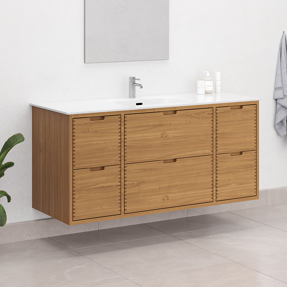 Denne elegante møbelpakke i olieret eg er det perfekte valg til ethvert moderne badeværelse. Pakken er delvis massivt eg og delvis finér.
