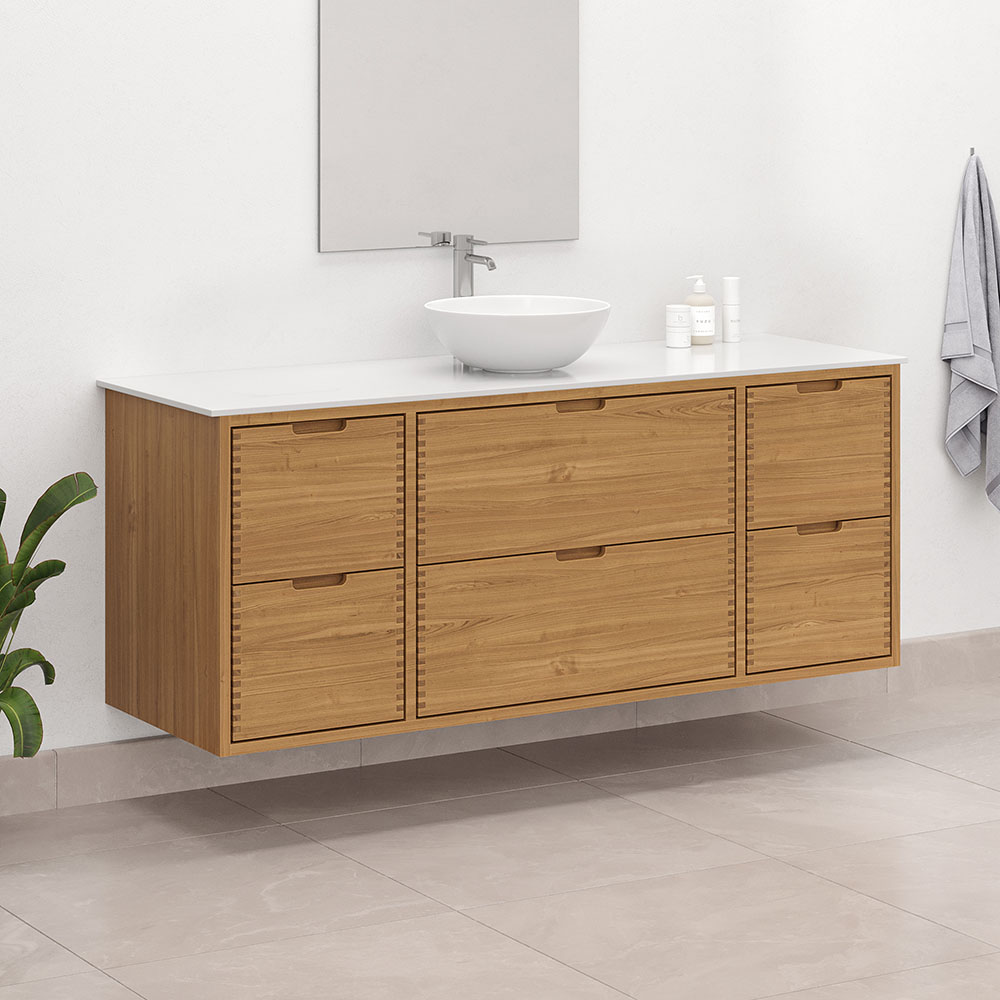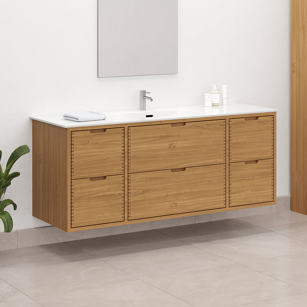 Denne elegante møbelpakke i olieret eg er det perfekte valg til ethvert moderne badeværelse. Pakken er delvis massivt eg og delvis finér.