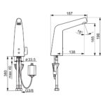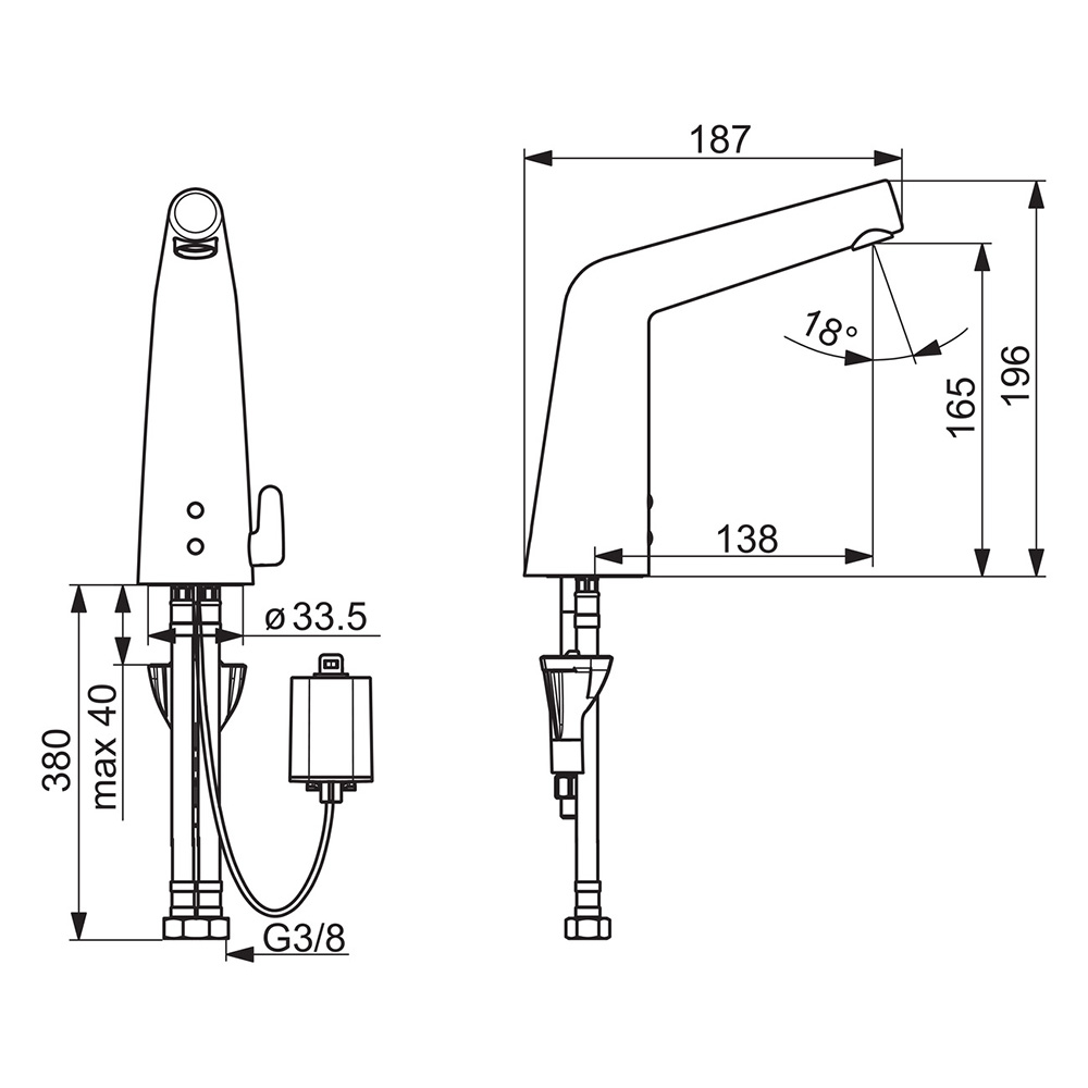 Berøringsfri håndvaskarmatur med temperaturregulering, 6 V. Det er ikke nødvendigt, at justere armaturet ved installation, da der anvendes en avanceret autofokus sensor. Bluetooth sensoren gør det nemt, at monitorere og justere armaturet.