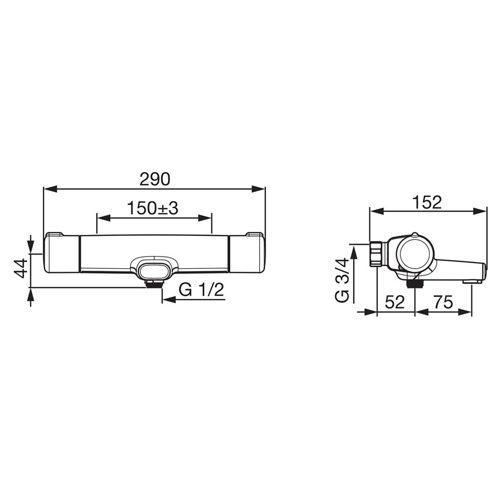 Bruse termostat (incl kar tud) med skoldingsspære og mængde begrænser (3/4″)