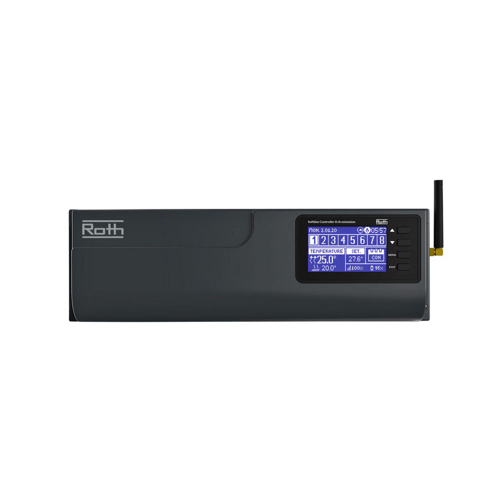 Anvendes til udvidelse af Softline master. Der anvendes 230V termomotorer. Der kan kobles 4 termomotorer på hver kanal, ialt 32 stk. termomotorer på hver kontrolenhed.