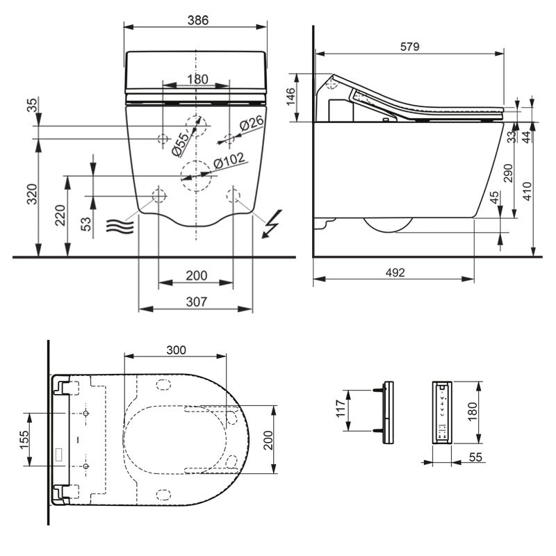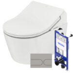 EWATER+: Renser vaskedysen med desinficerende vand (som toilettet selv danner ved elektrolyse). Det fjerner 99,9 % af bakterier og virus – herunder COVID-19. Det hæmmer vækst af bakterier, som kan misfarve kummen, begrænser behovet for at bruge kemikalier til rengøring og belaster ikke miljøet. Findes kun hos TOTO